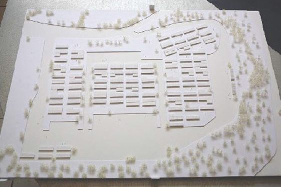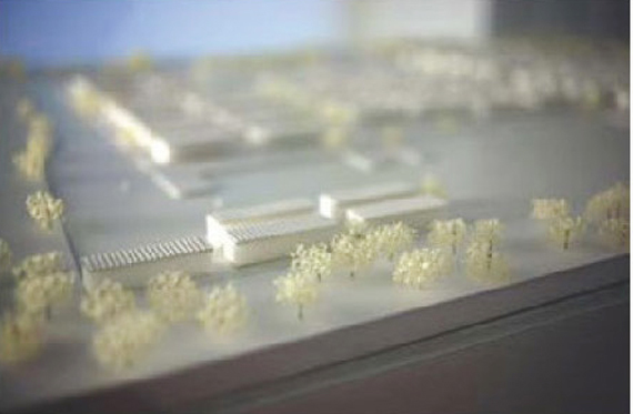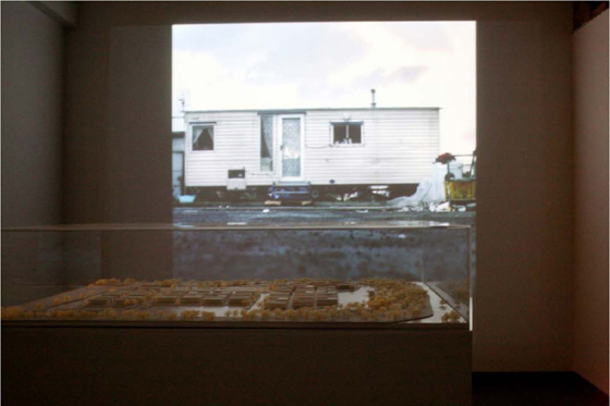 [Video installation, PVC model from a real scale 1:1000 / projection 280×280 cm / model 70×100 cm]