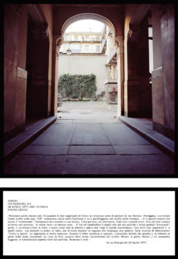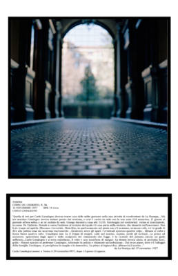 Muri di Piombo (Lead Walls) proposes an analysis of national and historical identity, through a series of 50 texts and 50 photographs taken at scenes of the terrorist attacks of the “Anni di Piombo” (the period of left-wing terrorism in Italy from the mid-1970s to the early 1980s). The piece recounts this often ignored, or forgotten chapter in Italian history: each photograph is taken at the same time and on the same day that the original terrorist attack took place on.