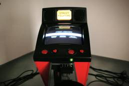 Street Fighters addresses the delicate theme of death at work in Italy, the country with Europe’s highest professional mortality rate. An unfortunate record of more than 1300 victims a year, meaning that 4 or 5 workers die every day, for the greediness of those managers who don’t stick to health and safety regulations. The project consists of a video installation: short videos played by an 80’s game cabinet, from the bottom of which many power cables run across the floor and walls of the space.